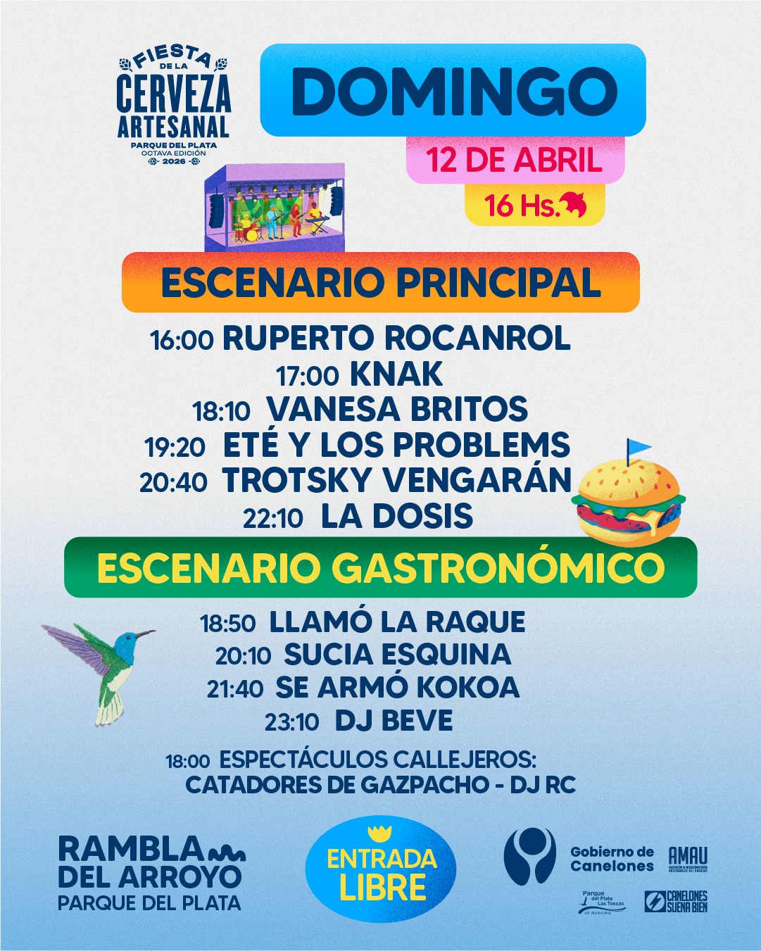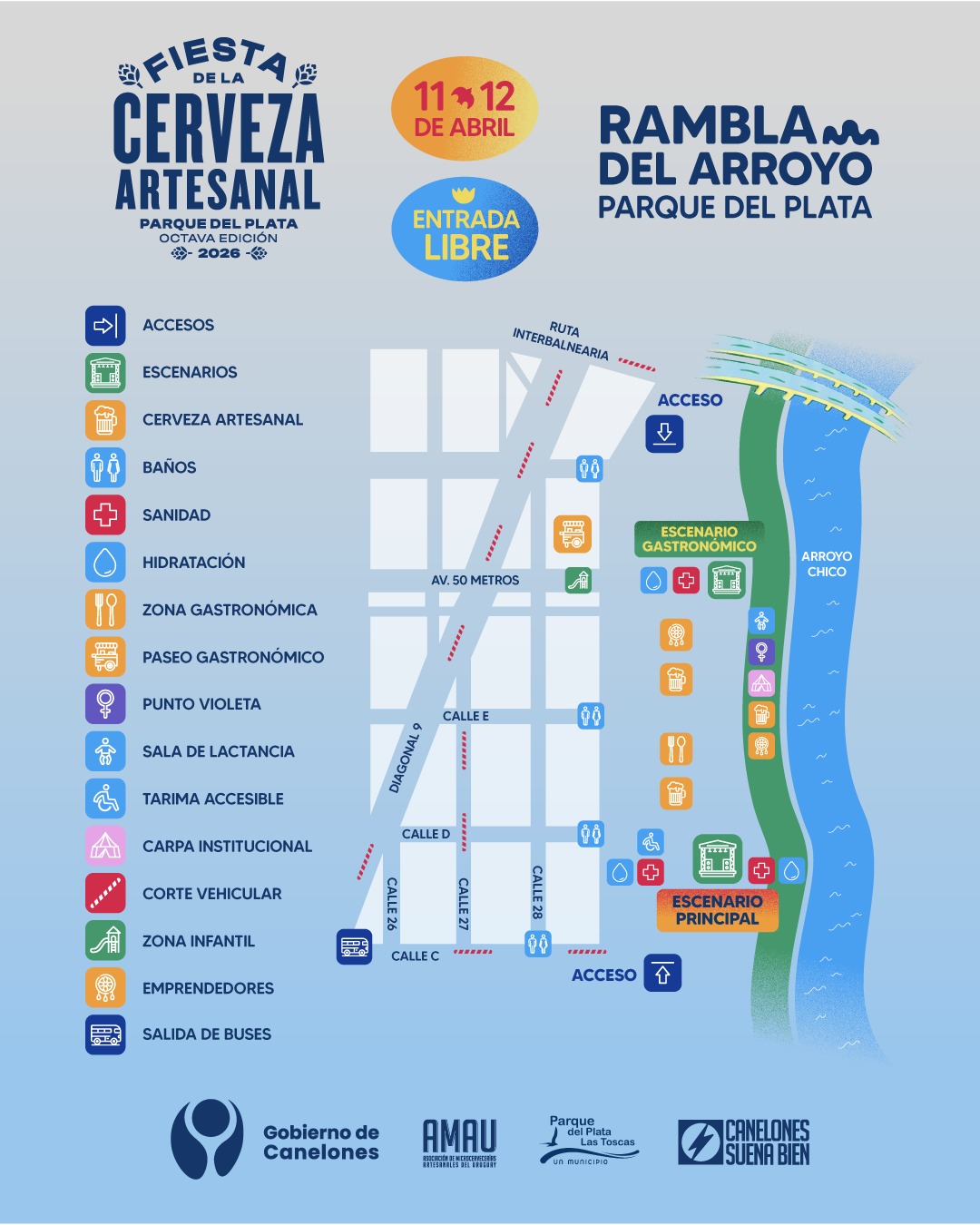 El próximo 11 y 12 de abril se realizará la octava edición de la Fiesta de la Cerveza Artesanal en la rambla del arroyo de Parque del Plata. Serán dos jornadas con entrada libre en las que se podrá disfrutar de música en vivo, espectáculos callejeros y una gran feria con 25 cervecerías artesanales, 50 propuestas gastronómicas y 20 emprendimientos locales.