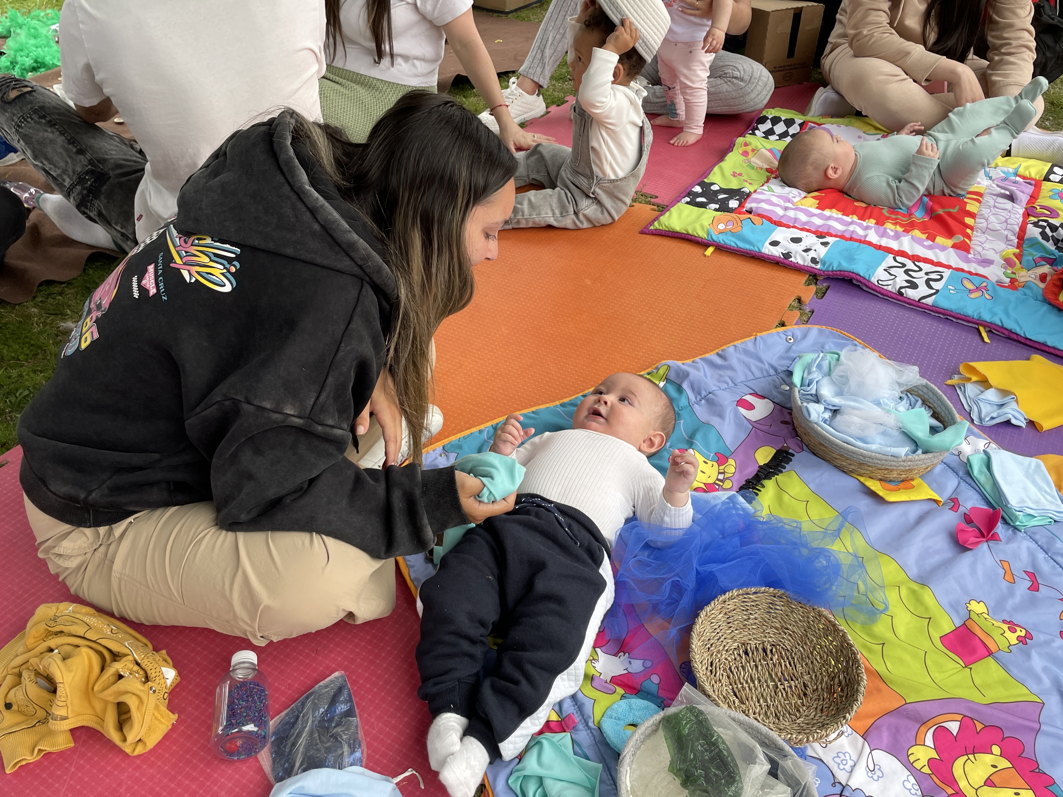 En línea con estos principios, la Directora de Desarrollo Humano, Prof. Gabriela Garrido, destacó la importancia de estimular la creatividad y la motricidad de los niños mediante el juego con materiales accesibles, subrayando que los bebés pueden desarrollar habilidades sorprendentes cuando se les permite moverse libremente.