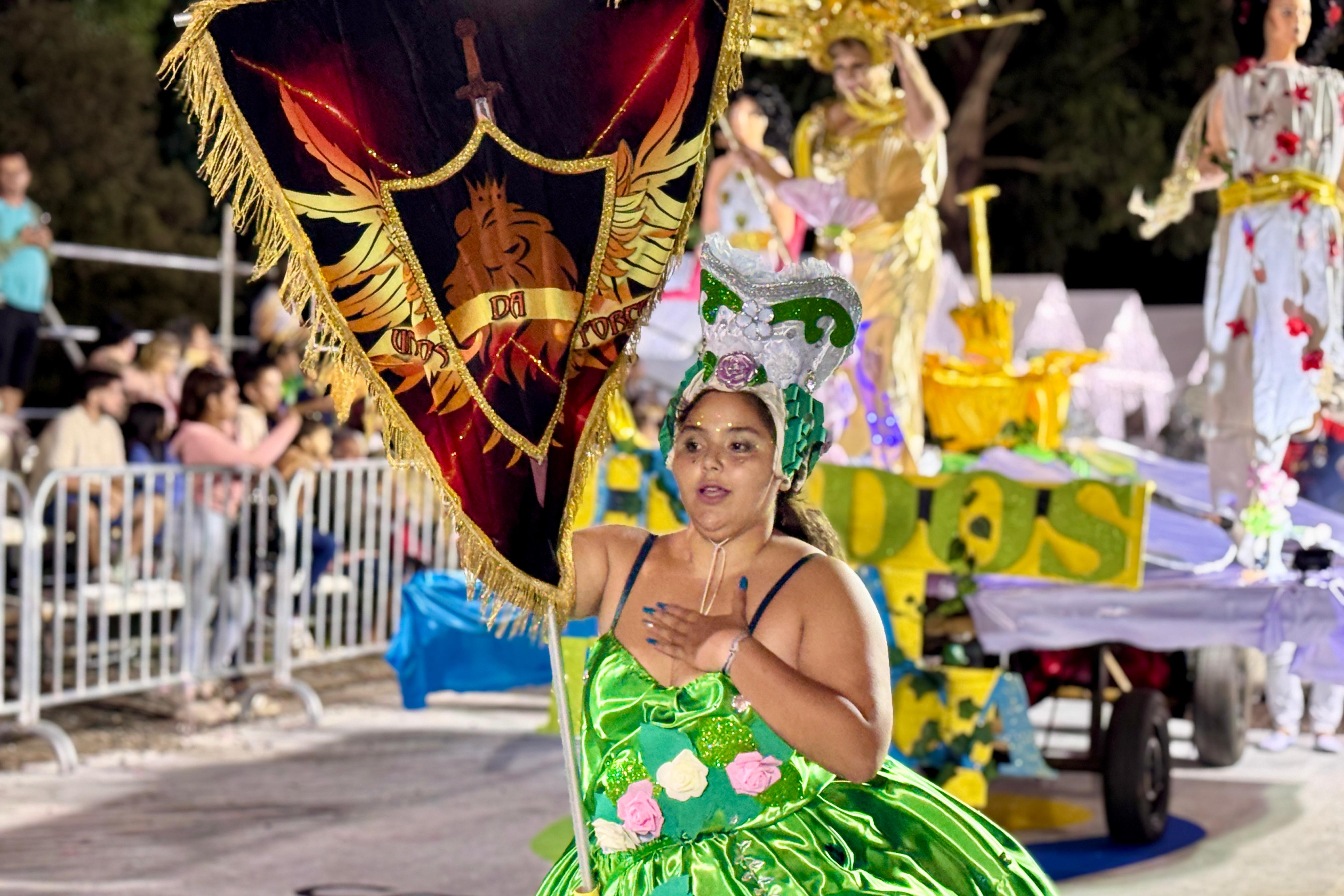 Todas las agrupaciones hicieron gala de sus coloridos atuendos, fuertes puestas en escena y carros alegóricos que hicieron del evento una noche totalmente disfrutable para los presentes.