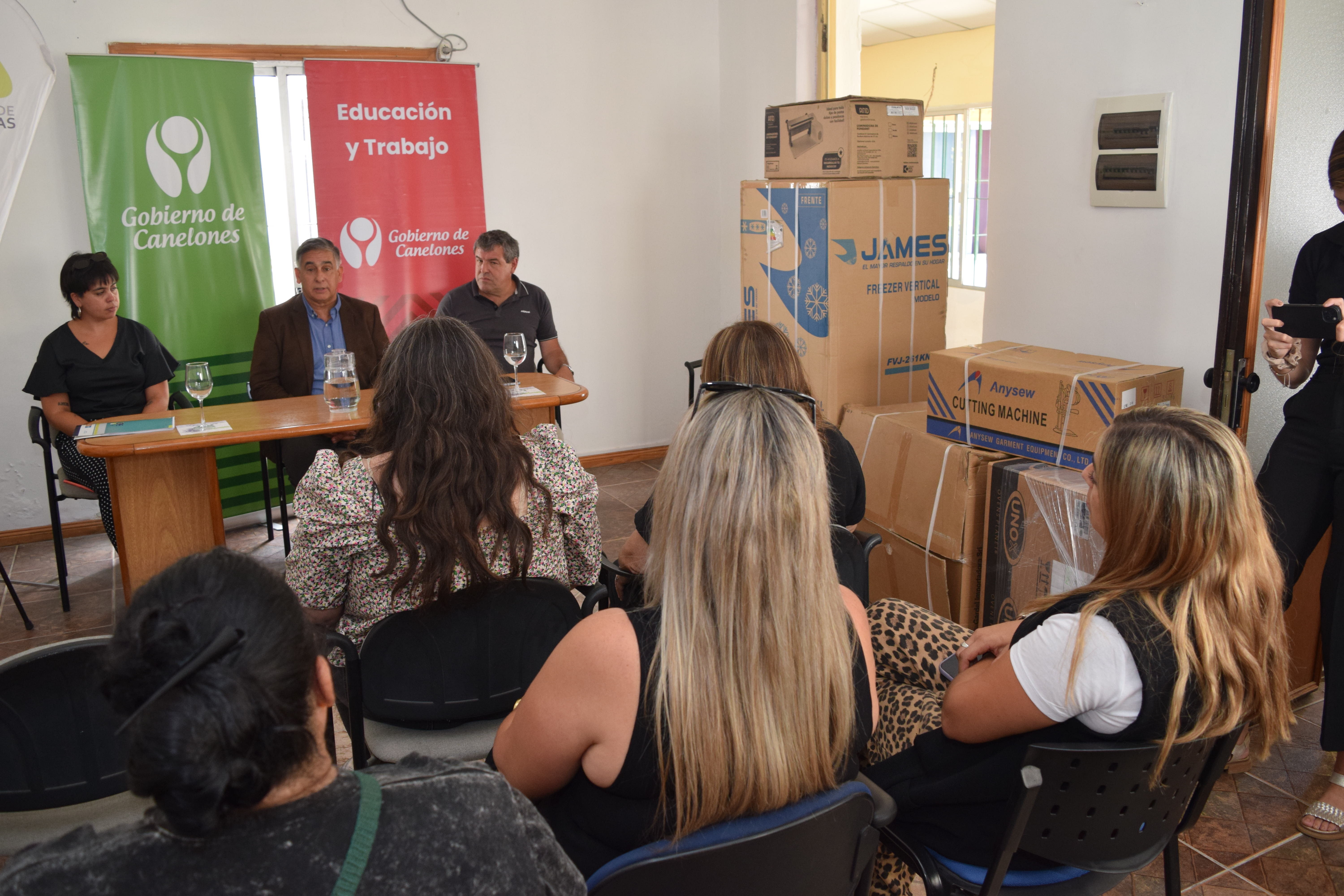 En Las Piedras, se otorgaron equipamientos como un sillón de peluquería, un freezer, una amasadora de 20 litros, una máquina recta industrial, una cortadora de tela, una sobadora eléctrica, un horno industrial y una máquina de ordeñe.
