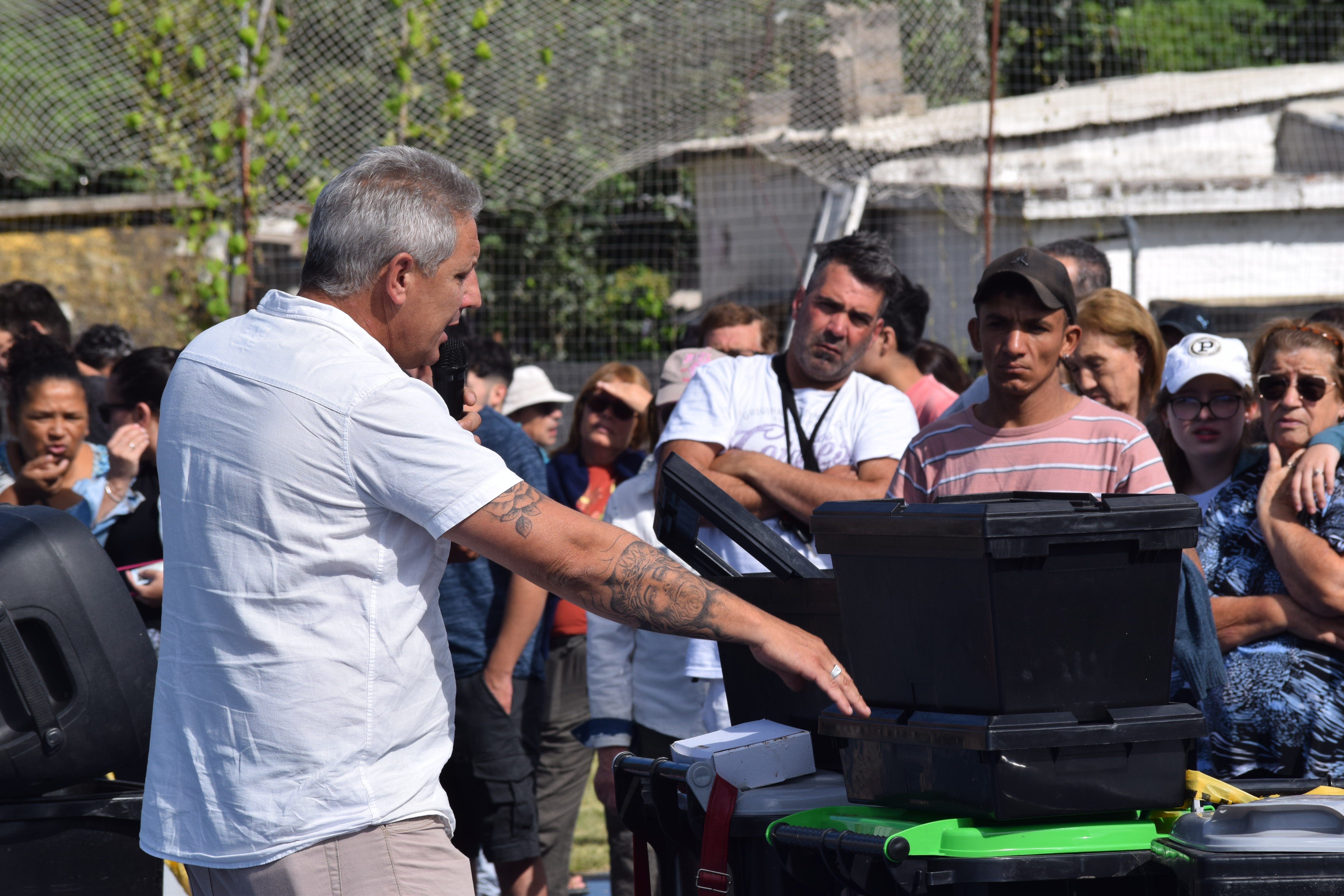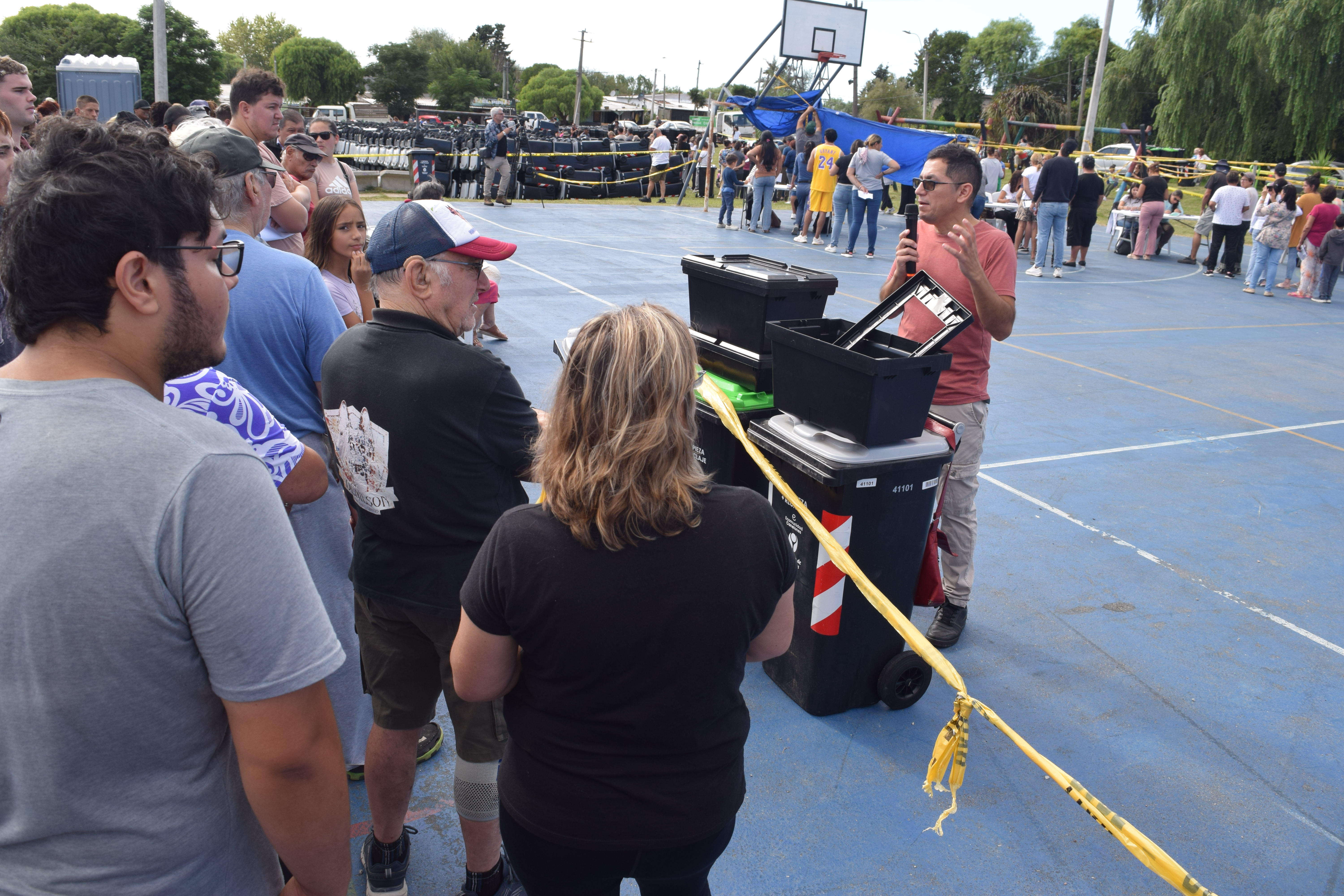 La entrega consistió en dos contenedores de 120 litros cada uno: uno con tapa verde para desechos reciclables y el otro con tapa gris para desechos comunes, además de una compostera que permitirá reciclar productos orgánicos y generar compost, lo que enriquecerá las huertas familiares de quienes deseen hacerlo.