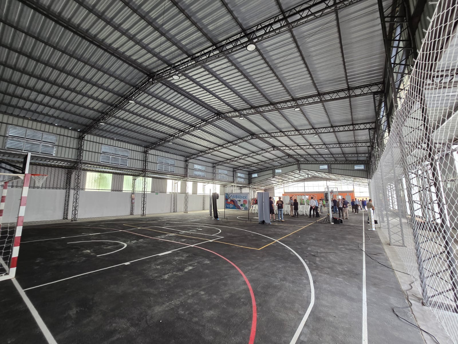 La obra de infraestructura tiene más de 1200 metros cuadrados en los que cuenta con una cancha de 40 m por 20 m, lo que permite albergar de forma reglamentaria todas las disciplinas que se juegan bajo techo (básquetbol, hándbol, futsal y vóleibol) y realizar eventos federados.