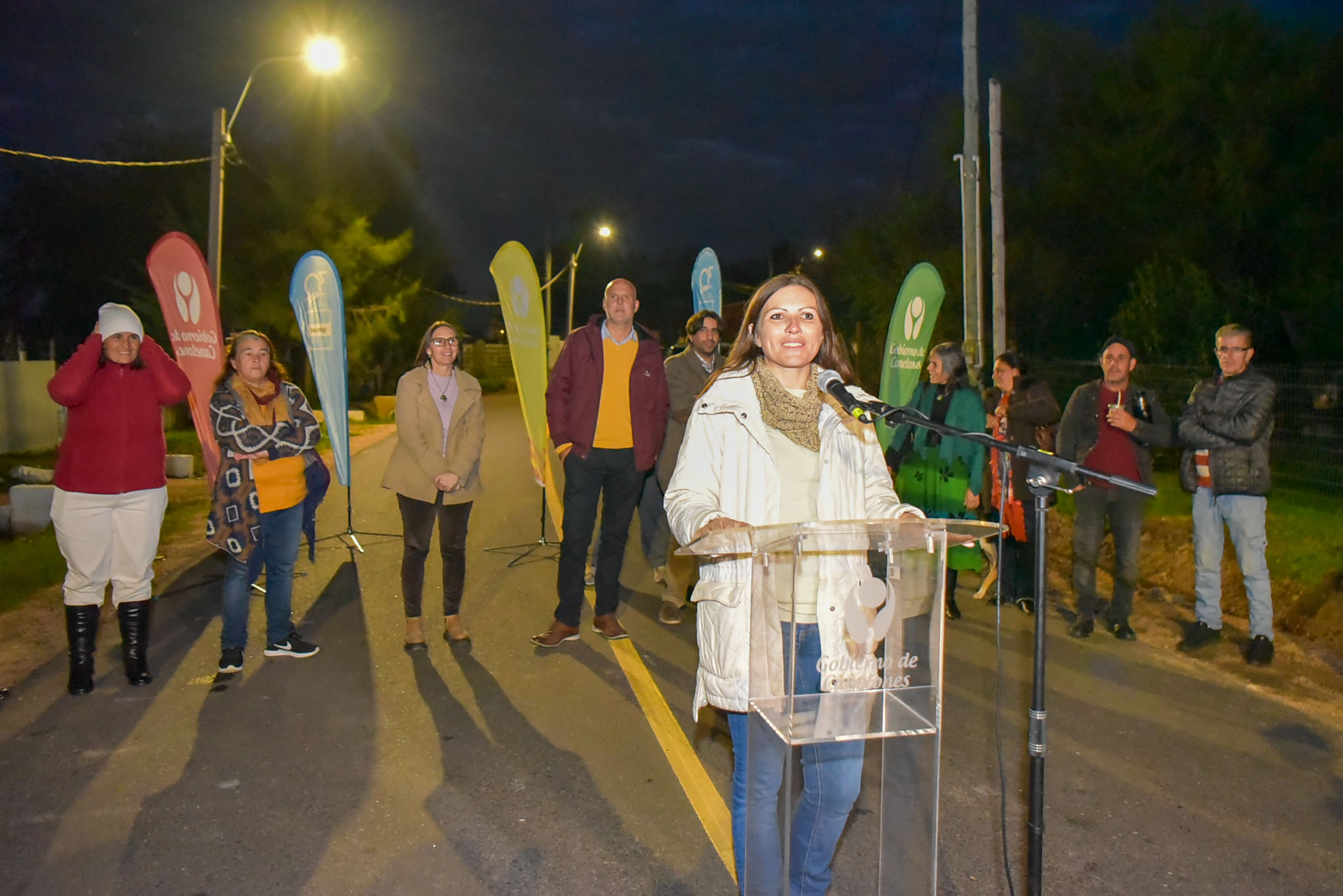 Acompañaron al Intendente Metediera en el corte de cinta el Secretario General de la Intendencia, Dr. Esc. Francisco Legnani, la Pro Secretaria General, As. Soc. Silvana Nieves, el Coordinador del Gabinete Territorial, Sergio Ashfield, el Director General de Descentralización y Participación, Ruben Moreno, y representantes de la empresa Grinor S.A., entre otras autoridades departamentales y locales presentes.