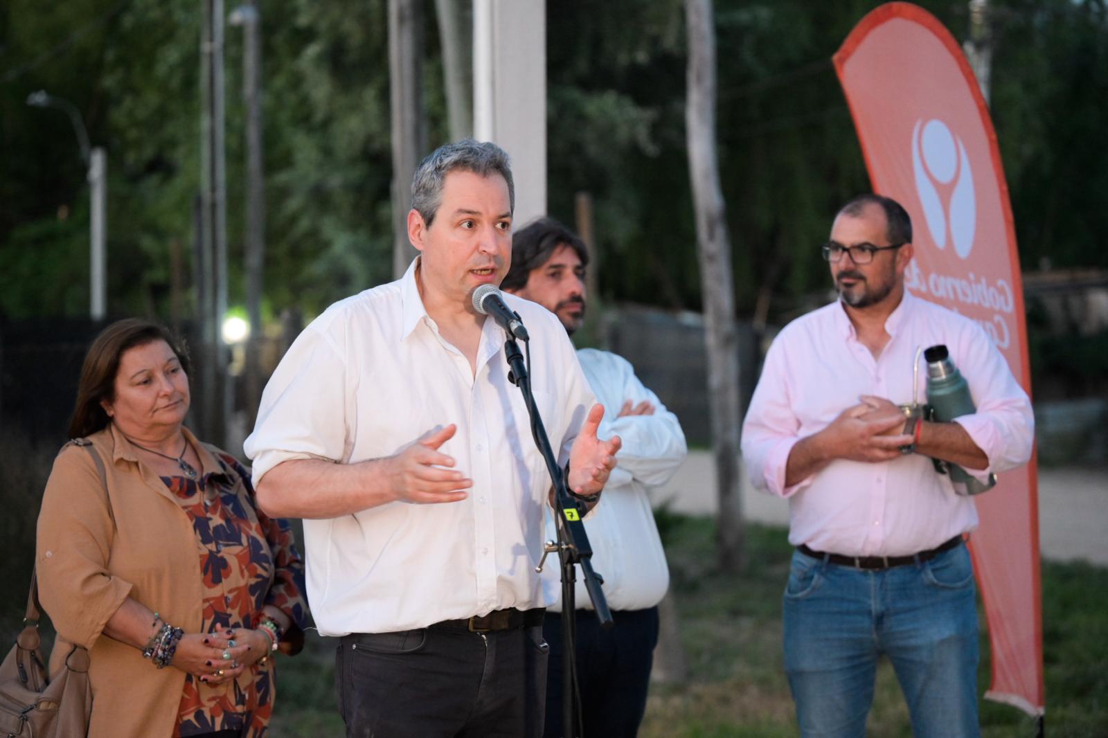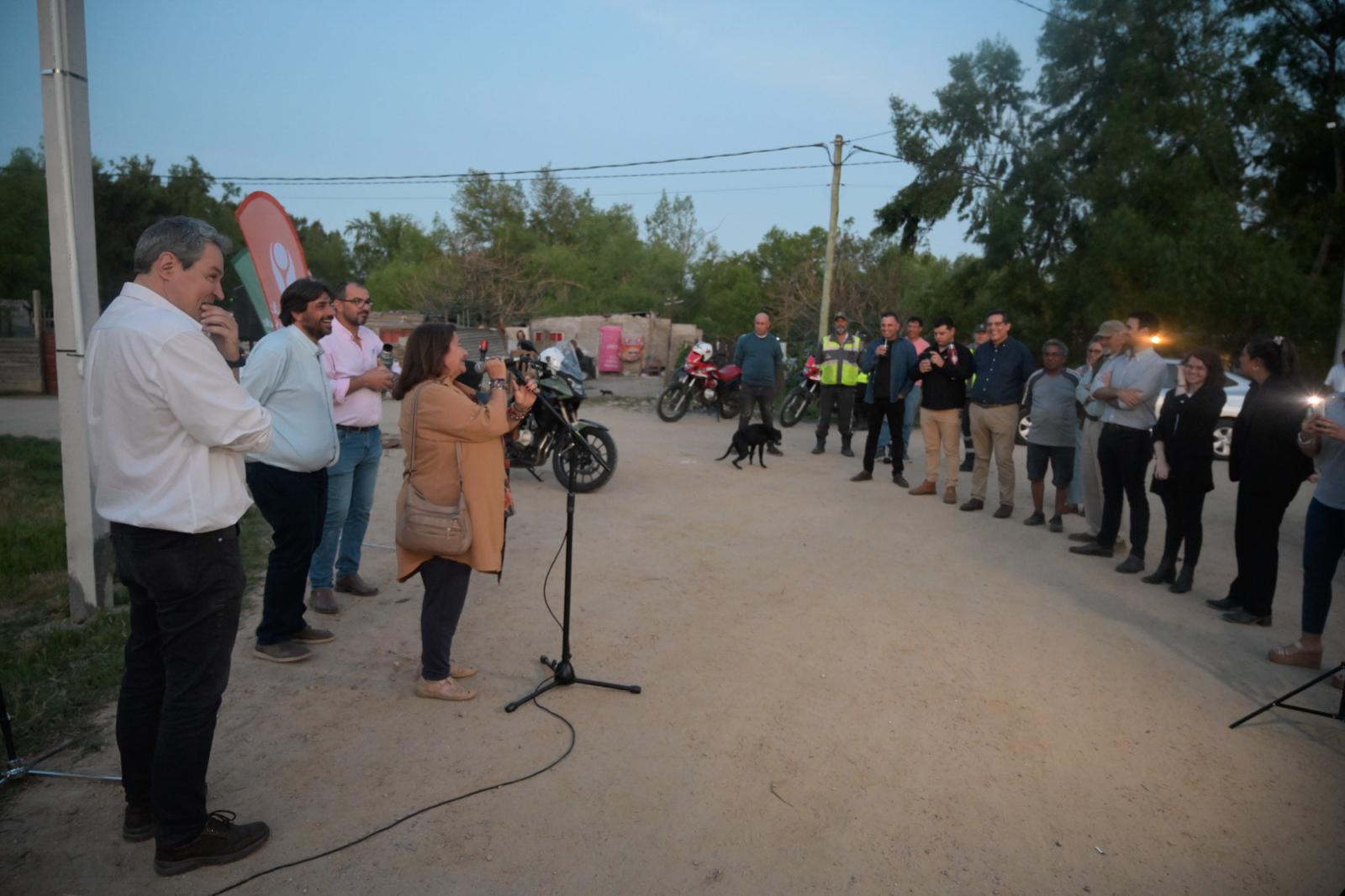 La ceremonia de puesta en marcha del nuevo sistema lumínico se desarrolló a la caída del sol, justo cuando varios vecinos y vecinas habían retornado a sus hogares luego de la jornada de trabajo. Es así que pudieron presenciar la actividad y varios aprovecharon para dialogar con el Intendente u otras autoridades presentes, para plantear inquietudes y transmitir algunas preocupaciones de un barrio obrero que continúa teniendo algunas dificultades sociales importantes.