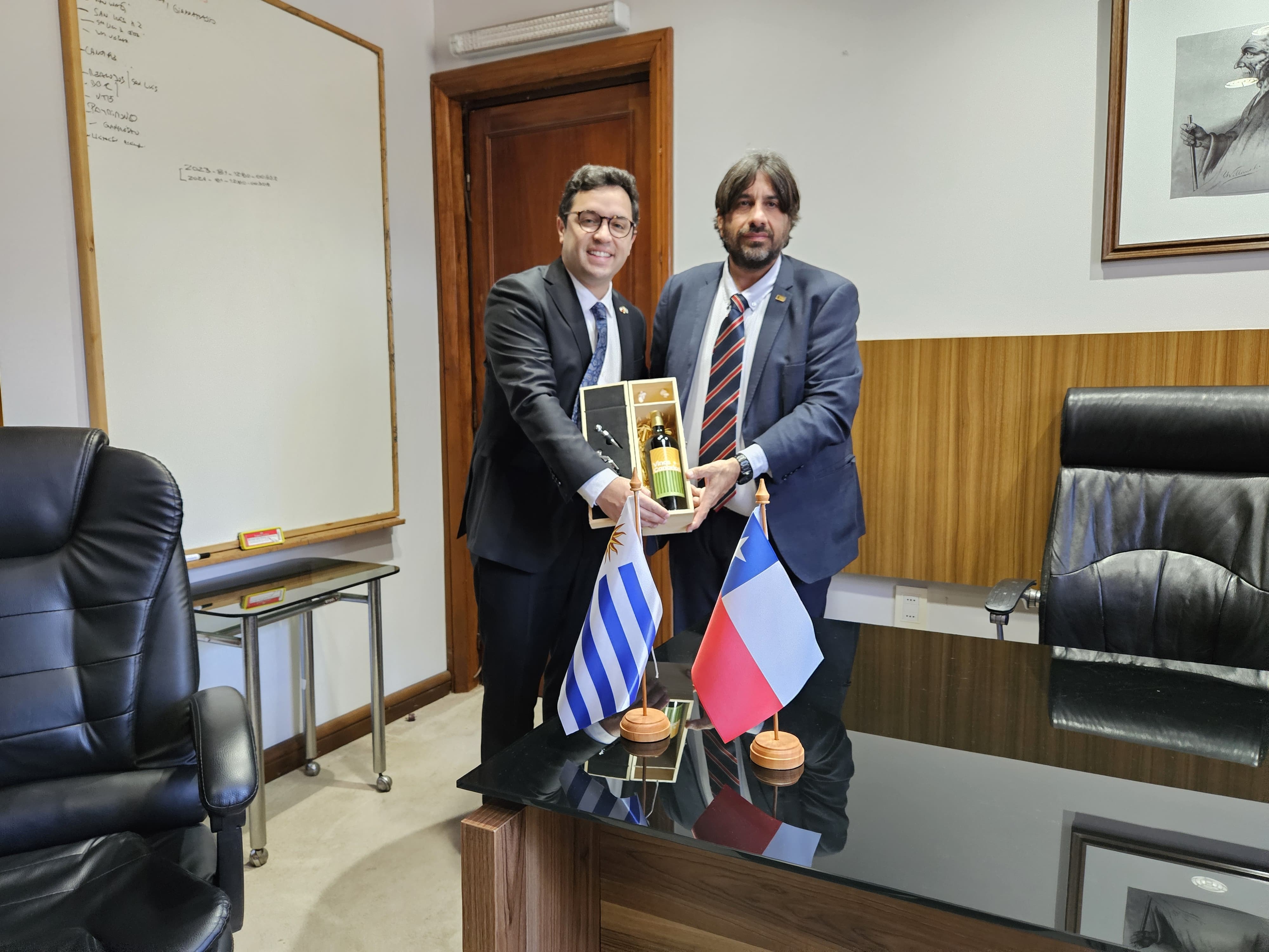 El embajador Morales agradeció la recepción y destacó el intercambio sobre el desarrollo agrícola y vitivinícola, así como los desafíos del cambio climático que impactan en las formas productivas. Subrayó la estrecha relación entre Chile y Uruguay, en especial en el intercambio tecnológico y empresarial en el ámbito agrícola. Resaltó, a su vez, la importancia de continuar trabajando en conjunto en temas como la gestión de plagas y regadíos eficientes, comprometiéndose a avanzar en una agenda de cooperación en los próximos meses.