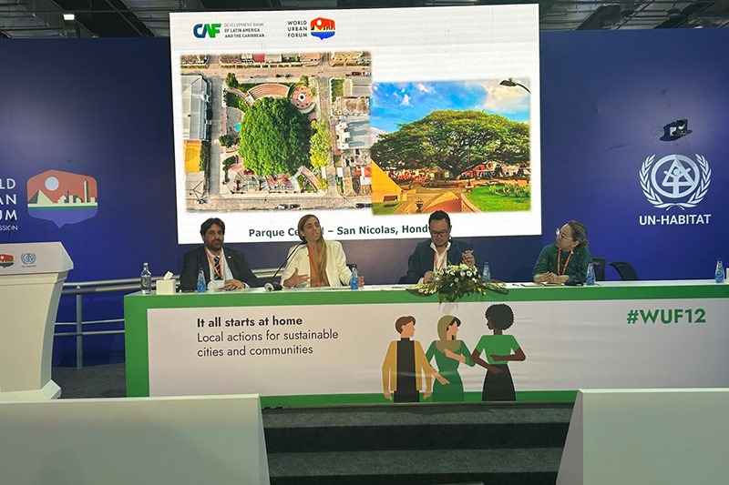 El panel fue organizado por la CAF - Banco de Desarrollo de América Latina y el Caribe y ONU hábitat en dos bloques, en los que se presentaron experiencias exitosas de ciudades sostenibles y la iniciativa de la Red de Biodiverciudades liderada por CAF para apoyar y financiar proyectos sostenibles para el territorio y las personas que lo habitan.