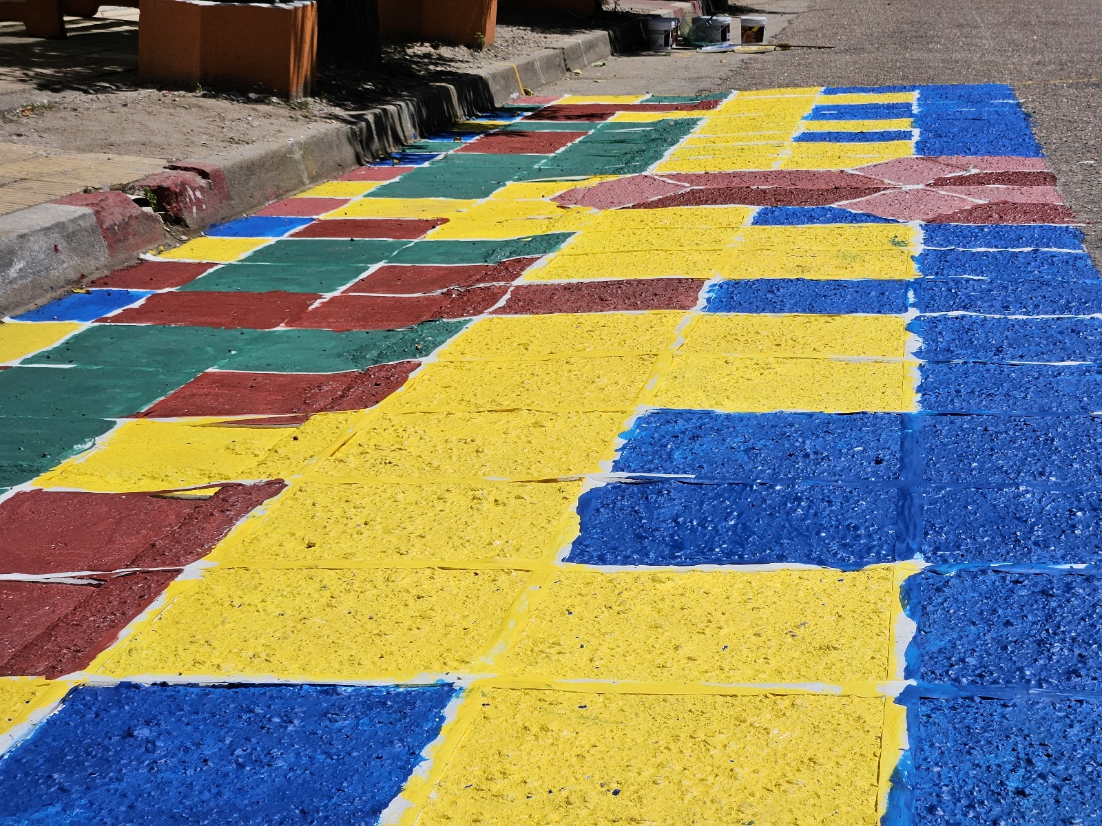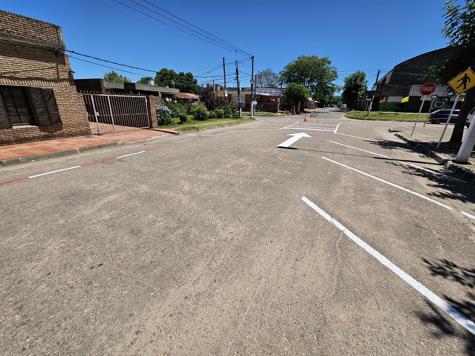 La Dirección General de Tránsito y Transporte pintó la señalización vial, mientras que los niños y niñas de la escuela junto con funcionarios del municipio, de la Unidad de Animación Sociocultural, de la Asesoría de Territorio Sostenible y de la Dirección de Acondicionamiento Urbano pintaron la calle con un diseño realizado y coordinado en los talleres que se desarrollaron previamente, en pos de contar con la máxima participación en las distintas etapas del proyecto: diagnóstico, codiseño, ejecución y, a futuro, evaluación.