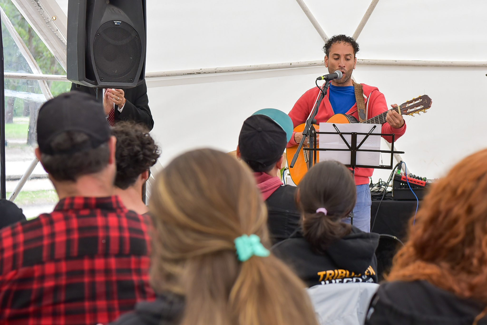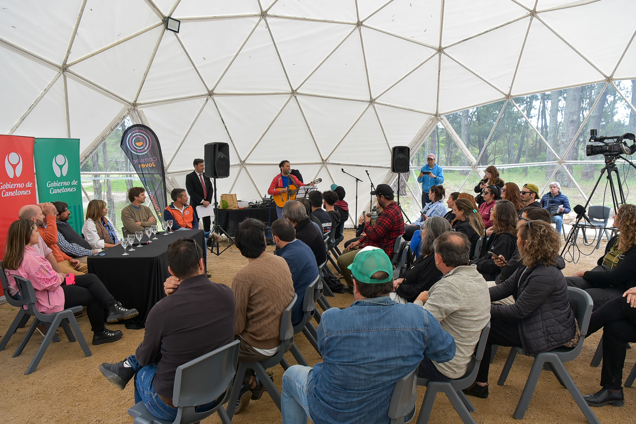 El acto contó con la presencia del Intendente Marcelo Metediera, que estuvo acompañado por el Secretario General, Dr. Esc. Francisco Legnani, la Directora General de Desarrollo Humano, Profa. Gabriela Garrido, la Responsable de Comuna Joven, Nataly Zalkind, el Director General de Cultura, Sergio Machín, y el Director del parque Roosevelt, Arq. José Freitas, además de otros directores, autoridades departamentales, municipales y público en general.