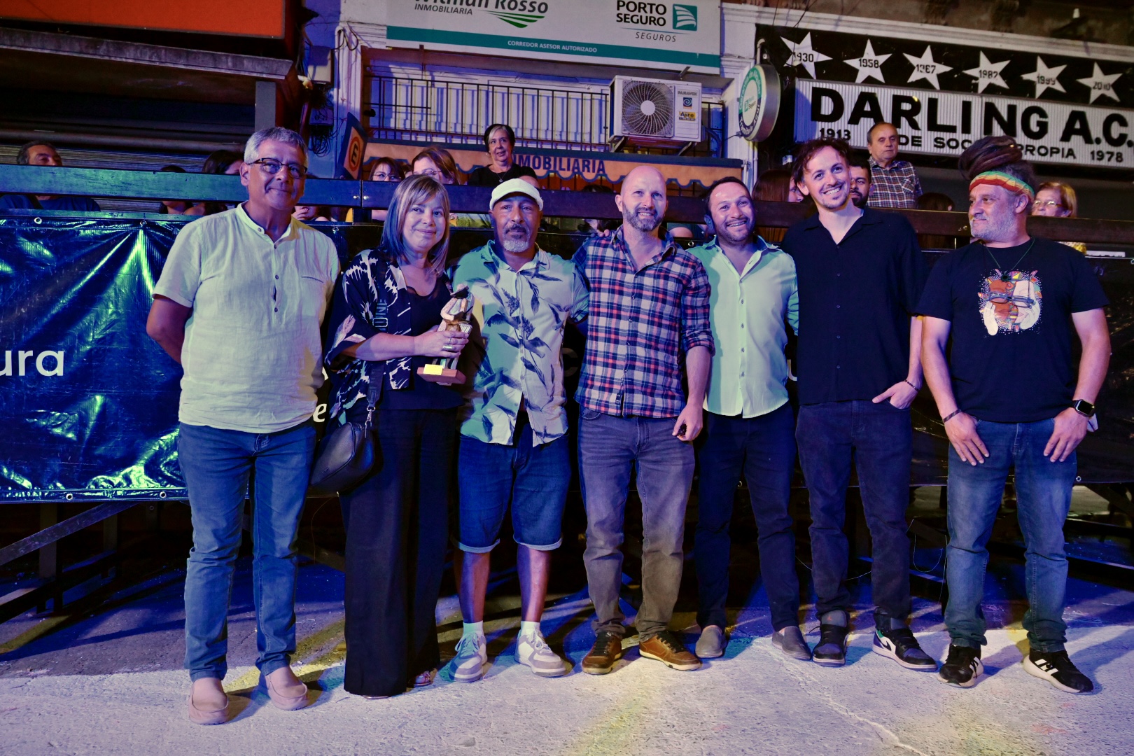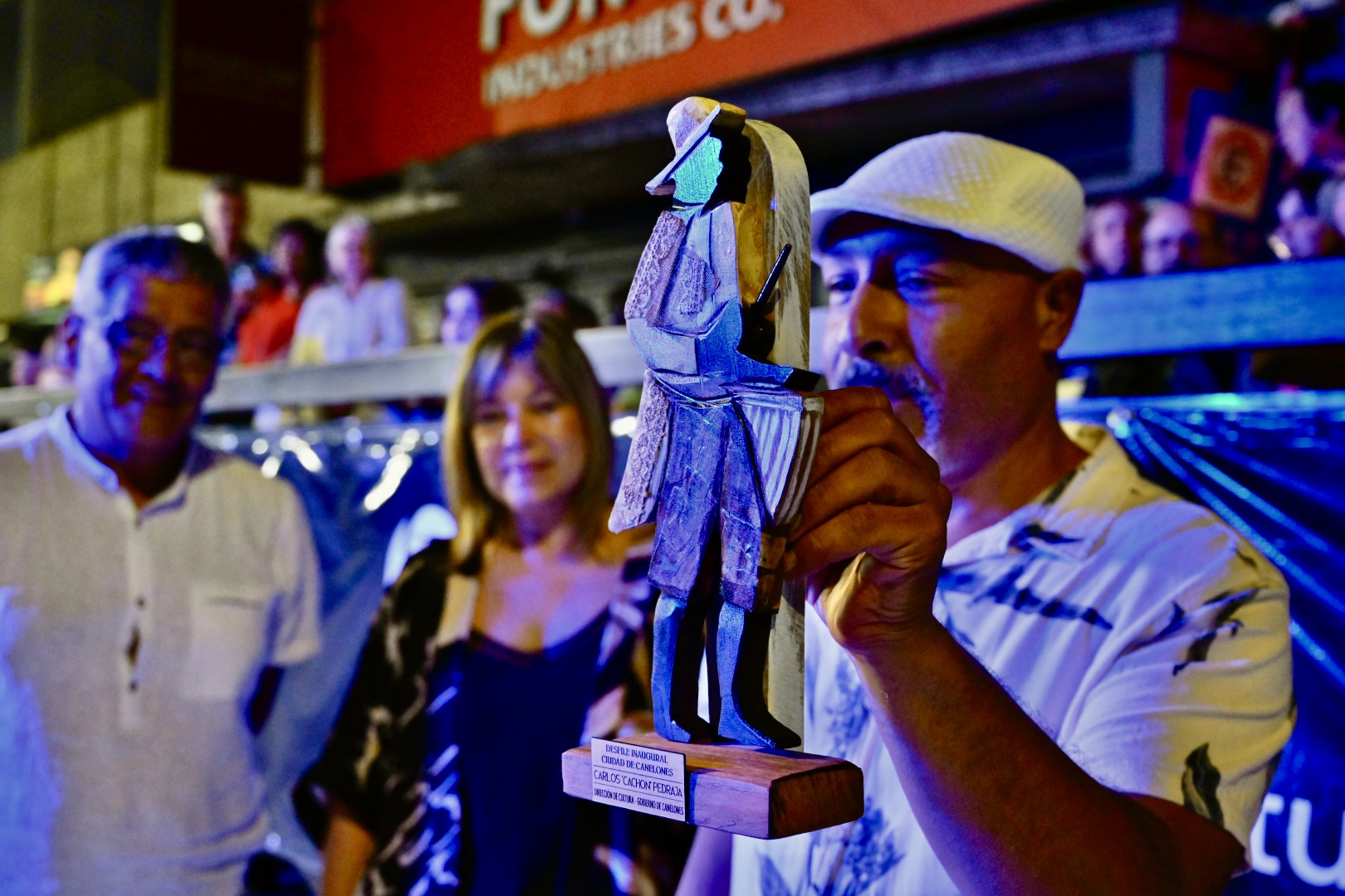 Durante el evento, el hijo de Cachón, Carlos Raúl Pedraja Arévalo, recibió una estatuilla de confección artesanal, que fue entregada por Garrido, Machín, Pimienta, el Presidente de la Junta Departamental de Canelones, Daniel Pereira, y los Responsables del Área de Carnaval, Santiago Recalde y Shubert Pérez.