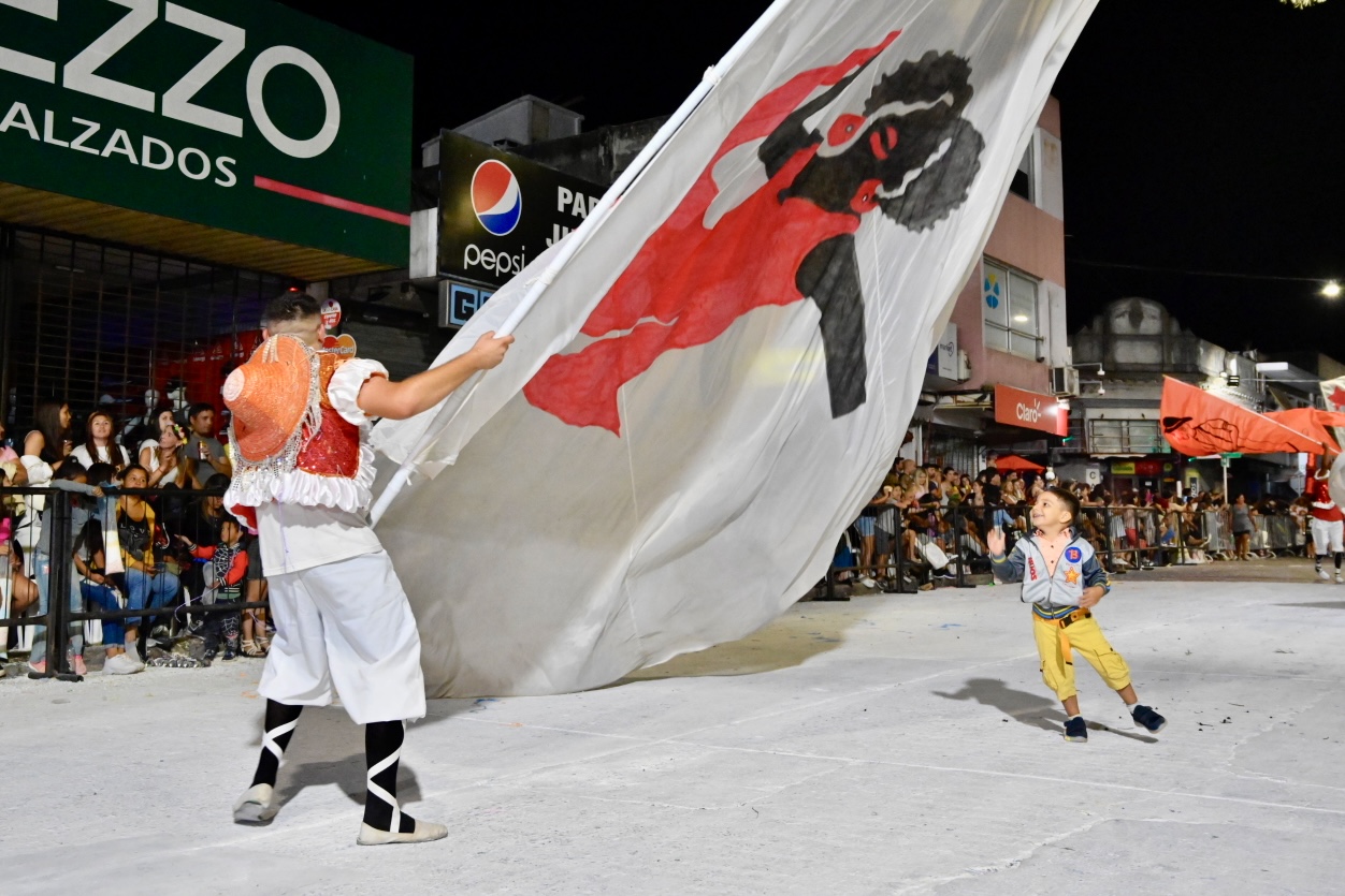 Antes de cerrar el desfile, hizo su pasaje la comparsa La Roma, integrada por familiares, amigos y compañeros de varios carnavales de Cachón y el público acompañó con aplausos y danza durante su presentación.