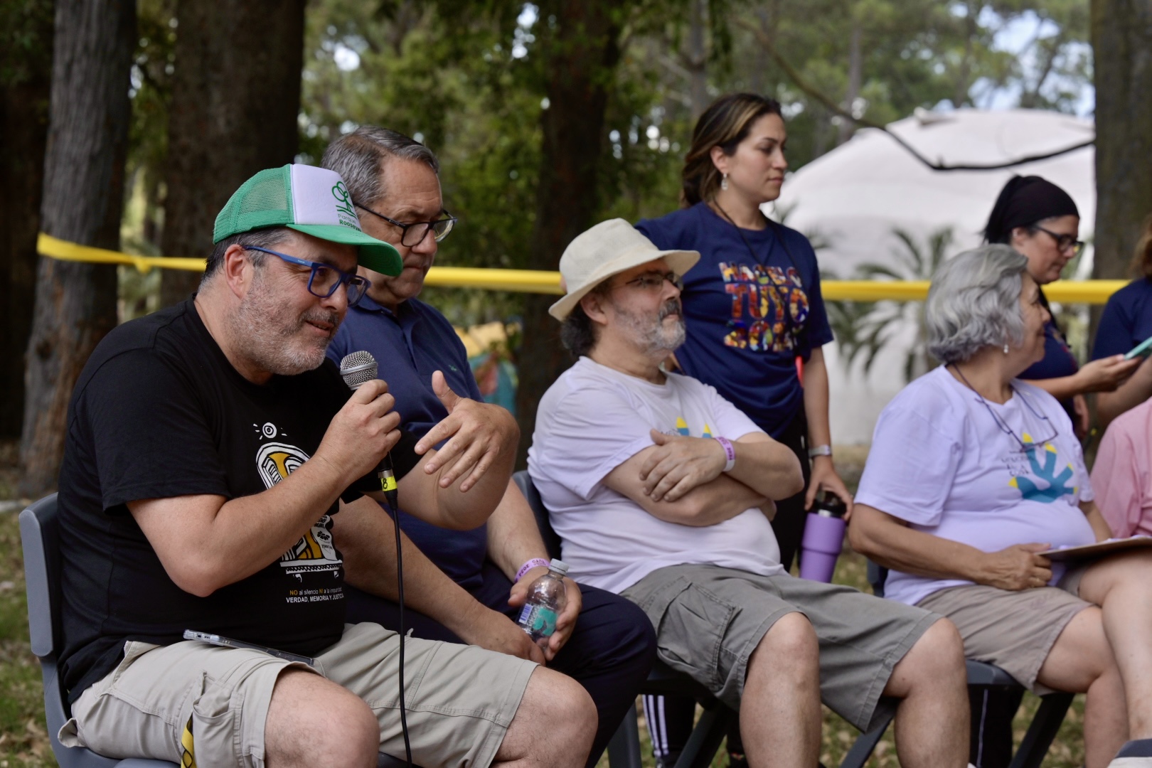 Luego de la plantación, el equipo de la Dirección de Derechos Humanos junto a integrantes del colectivo Memorias de la Costa se acercaron al campamento juvenil Hacelo Tuyo y desarrollaron el taller “Cómo fortalecemos la democracia con más memoria”, en el que el historiador Rodrigo Rampoldi hizo una introducción histórica e integrantes del colectivo contaron sus experiencias durante la privación de libertad que vivieron por motivos políticos.