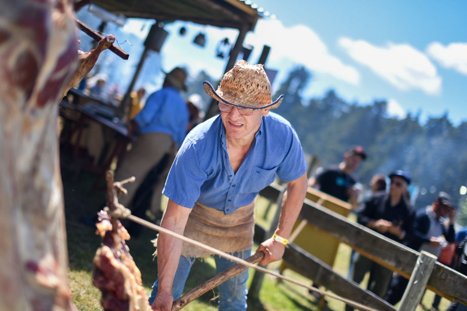 El asador de la sociedad de fomento rural Sin Fronteras, Marcelo Rezende, explicó que, según él piensa, para un buen asado hace falta “paciencia, buena leña y que lo que vaya a asar sea bueno, eso es lo principal”. Asimismo, comentó que su técnica para cocinar es al pincho y puntualizó que “un cordero al pincho en siete u ocho horas está pronto”. Además, Rezende detalló que “en la jornada de ayer se asaron ocho corderos” y su secreto está en la “Salmuera” que hacen con sal gruesa, agua y una pizca de ajo.