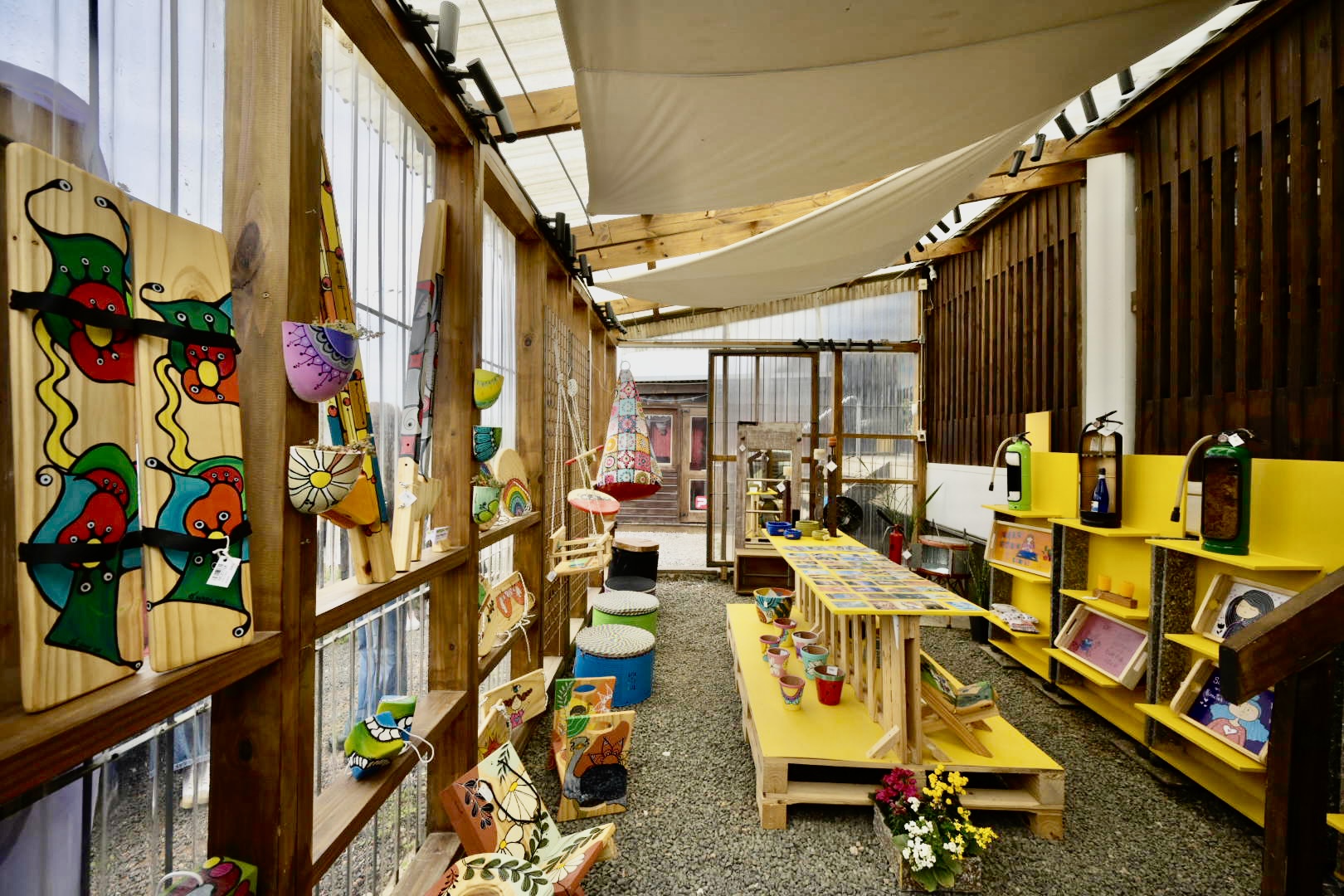 Allí se ofrecen alhajas, productos realizados por vitrofusión, vestimenta y textiles, regalos, accesorios para el hogar, budines, mermeladas, semillas y otros comestibles naturales saludables, entre muchos otros artículos. Funciona todos los días desde las 10:00 de la mañana y con horario extendido, donde las participantes se organizan en turnos para brindar una atención adecuada.