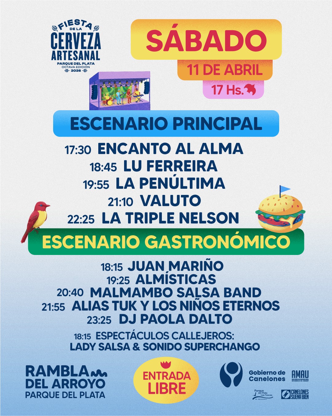 El próximo 11 y 12 de abril se realizará la octava edición de la Fiesta de la Cerveza Artesanal en la rambla del arroyo de Parque del Plata. Serán dos jornadas con entrada libre en las que se podrá disfrutar de música en vivo, espectáculos callejeros y una gran feria con 25 cervecerías artesanales, 50 propuestas gastronómicas y 20 emprendimientos locales.