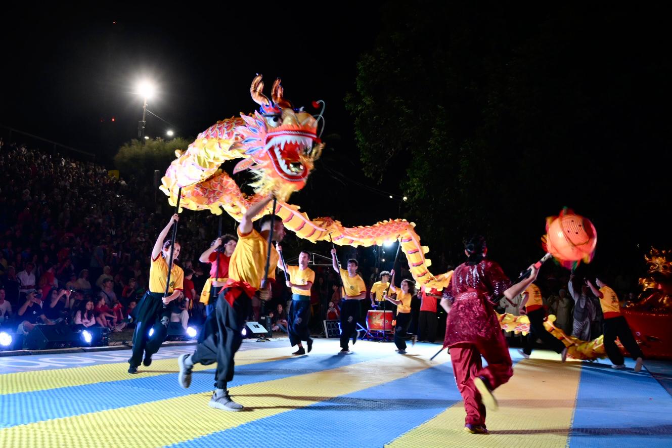 Como es tradición, la celebración tuvo su inicio con un colorido y pintoresco desfile por la peatonal del microcentro, donde dragones, leones y cerca de doscientos artistas marciales avanzaron acompañados por música tradicional china, despertando el entusiasmo del público que se fue sumando a lo largo del recorrido. El pasaje del desfile transformó el centro de la ciudad en un verdadero escenario a cielo abierto, repleto de elementos decorativos especialmente enviados desde el país asiático, con el público siguiendo de cerca cada tramo de esta manifestación cultural.