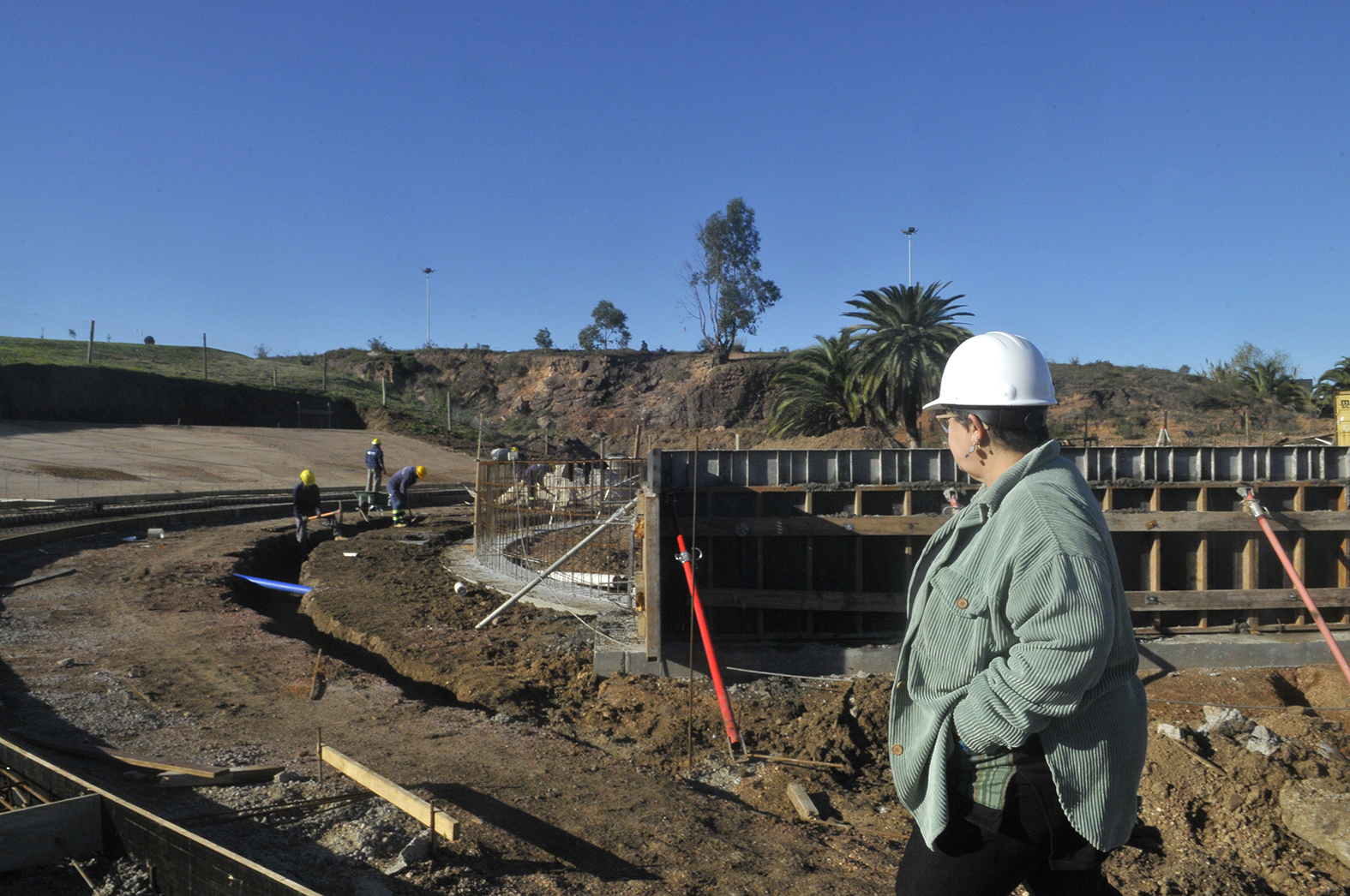 Al momento, ya se construyó el anillo correspondiente al sector de gradas y se ejecuta la conformación de los escalones, dejando previstos sectores accesibles para personas en situación de discapacidad. En lo que respecta al escenario, se efectuó el llenado de la zapata perimetral y se está realizando el llenado del muro perimetral para posteriormente ejecutar la losa superior. En cuanto a las caminerías de acceso al anfiteatro, ya se encuentran conformadas, a la espera de su llenado. También se realizaron las canalizaciones necesarias para la instalación eléctrica, que va desde el escenario hasta el mangrullo técnico que se ubica en el sector superior central.