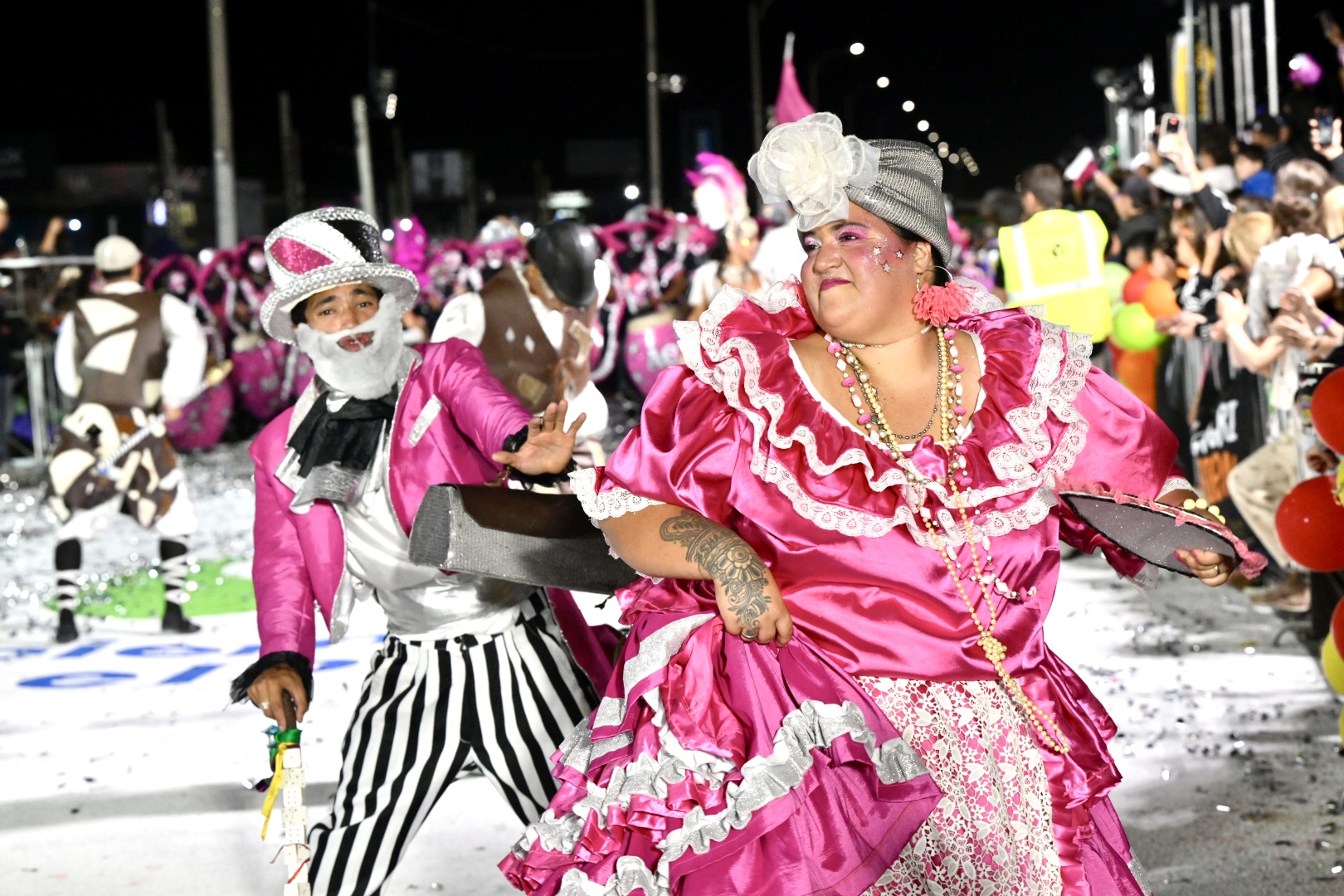 Todo el color de la fiesta de Momo estuvo presente con un despliegue importante de cada agrupación que pisó la calle. Candombe, carros, coreografías e historias contadas al pasar brindaron homenaje a las raíces de donde vienen las comparsas y sus ancestros.