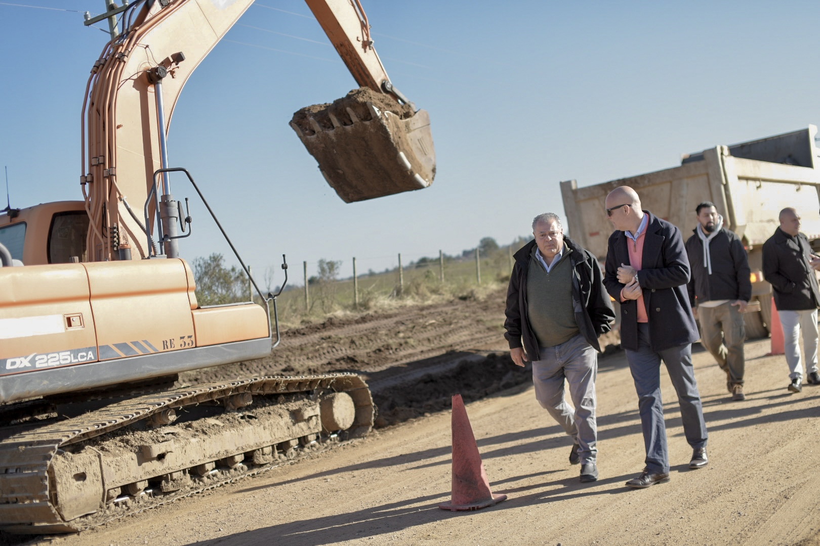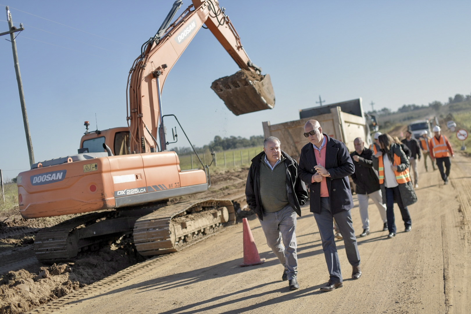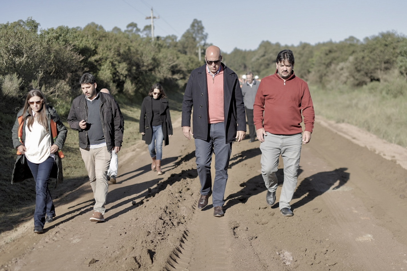 El primer punto de encuentro fue el camino de Los Fusilados de Soca, ex Ruta 70, donde se viene ejecutando una obra de pavimentación de 10 kilómetros que conecta la Ruta 9 con la Interbalnearia. Posteriormente, el grupo se dirigió al camino denominado como UYCA 0023, que conecta la zona de Piedras de Afilar con Santa Lucía del Este, con una extensión de 5,5 kilómetros. Allí se vienen desarrollando tareas de recargo, perfilado y limpieza de cunetas, en el marco del plan de caminería rural.