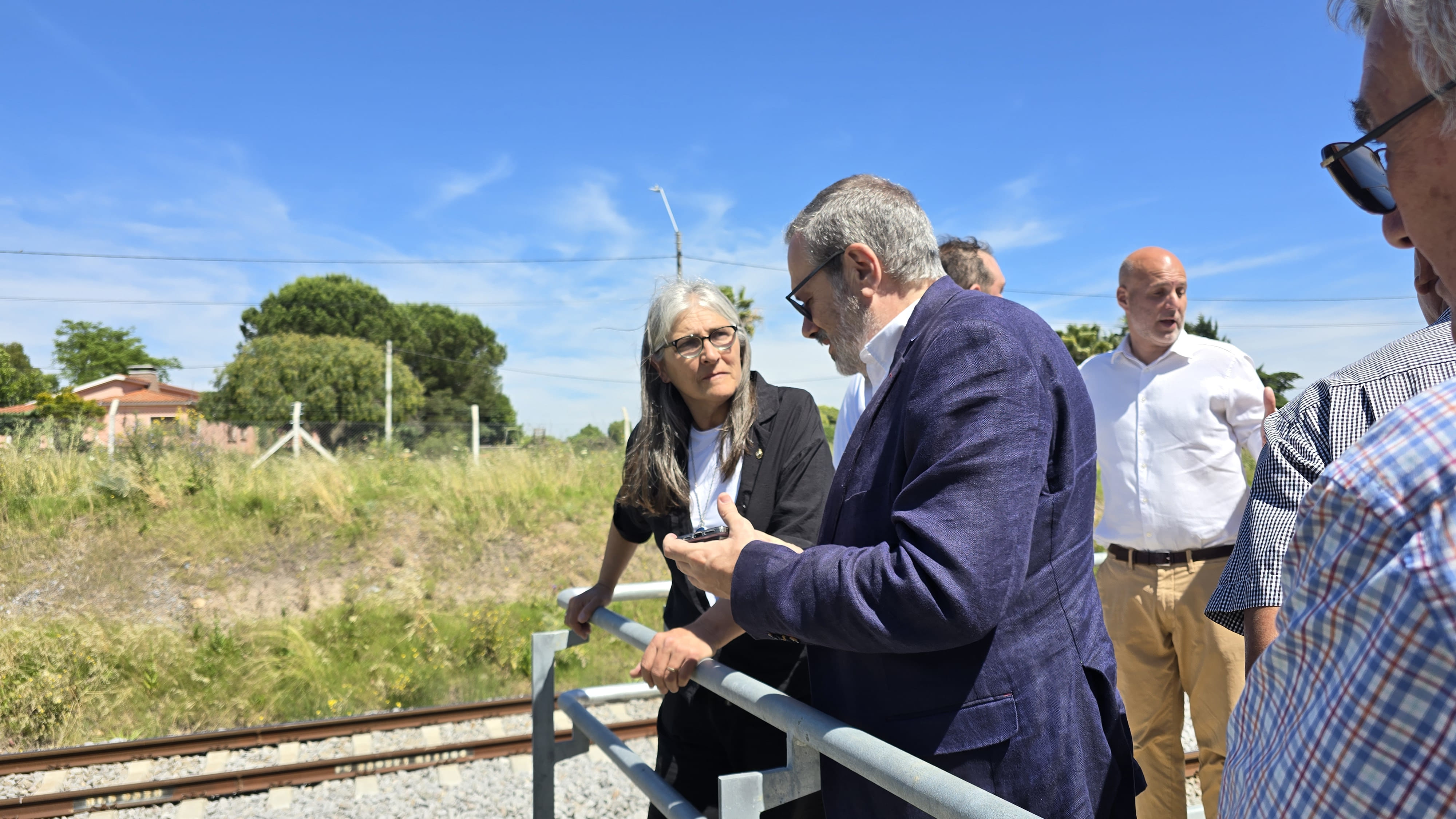 De la recorrida participaron, el intendete de Canelones, Francisco Legnani, el secretario general del Gobierno de Canelones, Pedro Irigoin, la ministra de Transporte y Obras Públicas, Lucía Etcheverry, acompañada por la subsecretaria del ministerio, Claudia Peris y un técnico de la Dirección Nacional de Transporte Ferroviario, el alcalde de 18 de Mayo, Juan Cervini y el alcalde de Progreso, Claudio Duarte.