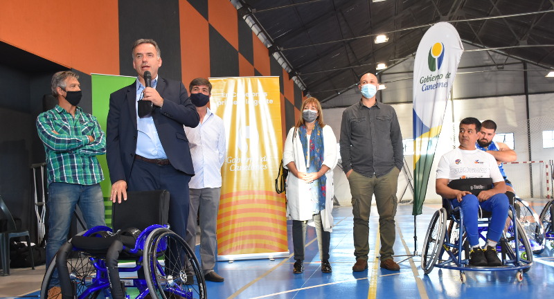 En la ocasión se presentó un modelo de silla de ruedas fabricado en Canelones, que está pensado para que se pueda generalizar su uso en los gimnasios polideportivos canarios. Al respecto, Lezama hizo especial hincapié en “los innovadores y emprendedores canarios, que, como hoy lo demostraron, están haciendo unas sillas de ruedas que son las primeras y únicas que se hacen en el Uruguay”.