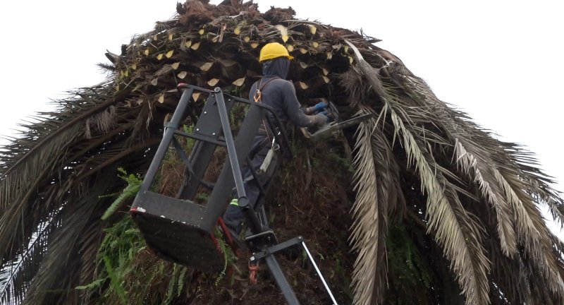 El proceso de enterramiento de palmeras